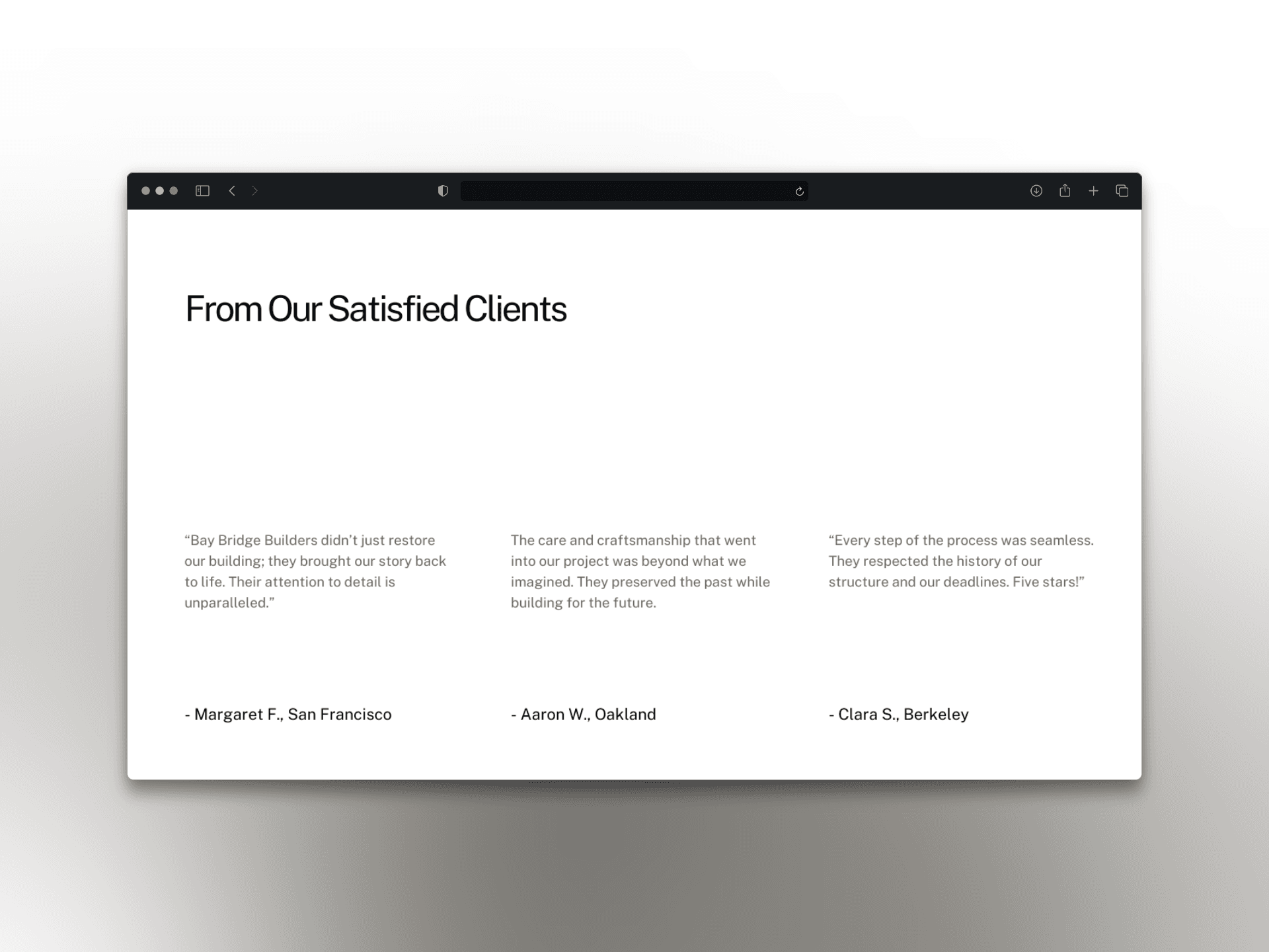 The language throughout was crafted to speak to both public and private sectors, highlighting Bay Bridge Builders as trusted stewards of history and reliable project partners.